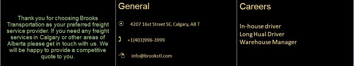 | HEAD OFFICE: 4207 16th Street SE, Calgary, AB T2N 1X9 Ph#: 1-403-996-3999 Email: info@brookstl.com |